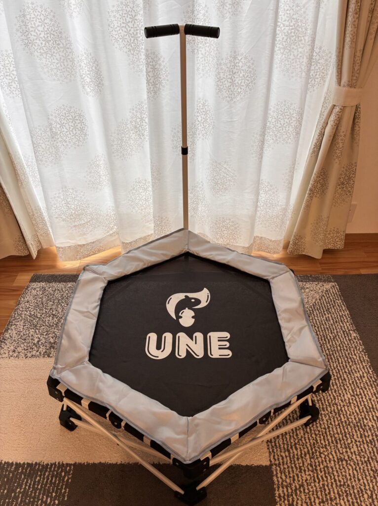 この記事では、UNEの折りたたみトランポリン(組み立て不要・手すり付き・直径106cm・耐荷重150kg) の購入を検討している方に向けて、実際に使ってみた感想をまとめています。