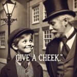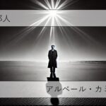 「take on」の語源を視覚的に表現しています。中央の人物は両腕を広げ、責任や挑戦、機会(重りや書類、光る球)を肩に受けています。これは「仕事や責任を引き受ける」「挑戦に立ち向かう」という意味を象徴しています。上空に書かれた「take on」の文字が、それらを積極的に受け入れる姿勢を強調し、決意や忍耐のイメージを演出しています。