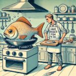 この画像は「bring home the bacon」の語源をイメージしたものです。イギリスの伝統行事「Dunmow Flitch(ダンモウのベーコン)」が由来とされ、1年間仲睦まじく過ごした夫婦がベーコンを持ち帰る様子を描いています。夫婦が笑顔で大きなベーコンの塊を持つ姿は、家族のために稼ぎ、生活を支える象徴となっています。背景には中世のイギリスの村をイメージした木造家屋が描かれ、歴史的な雰囲気が伝わるデザインです。