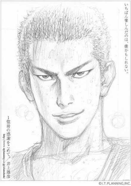 国内累計1億部を突破した際は「朝日新聞」「毎日新聞」「読売新聞」「日本経済新聞」「産経新聞」「東京新聞の朝刊紙上にて、作者の井上が一面広告で湘北メンバー6人それぞれの描き下ろしイラストを掲載(下に添付したイラストでは木暮が抜けています)。
