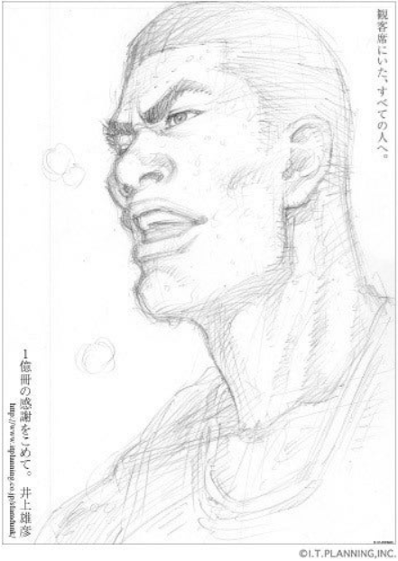 国内累計1億部を突破した際は「朝日新聞」「毎日新聞」「読売新聞」「日本経済新聞」「産経新聞」「東京新聞の朝刊紙上にて、作者の井上が一面広告で湘北メンバー6人それぞれの描き下ろしイラストを掲載(下に添付したイラストでは木暮が抜けています)。